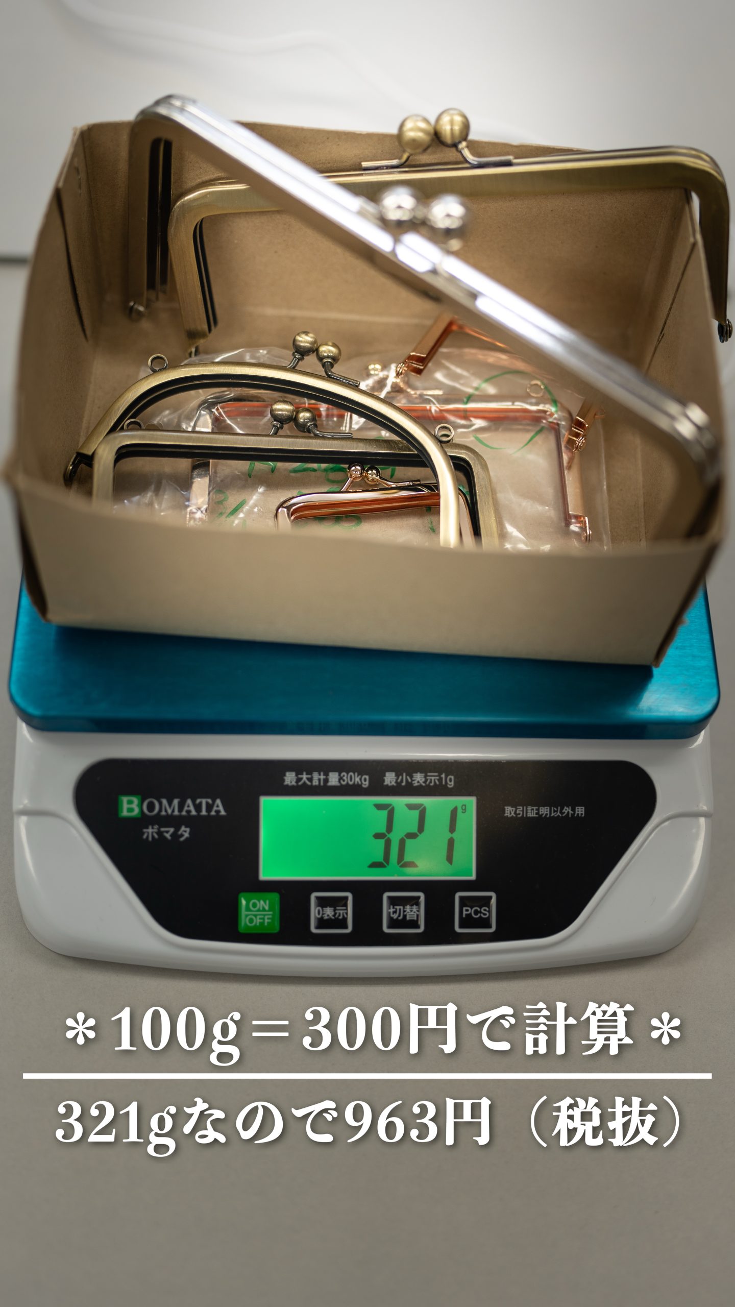 ◉100g=300円(税抜き)で精算させていただきます